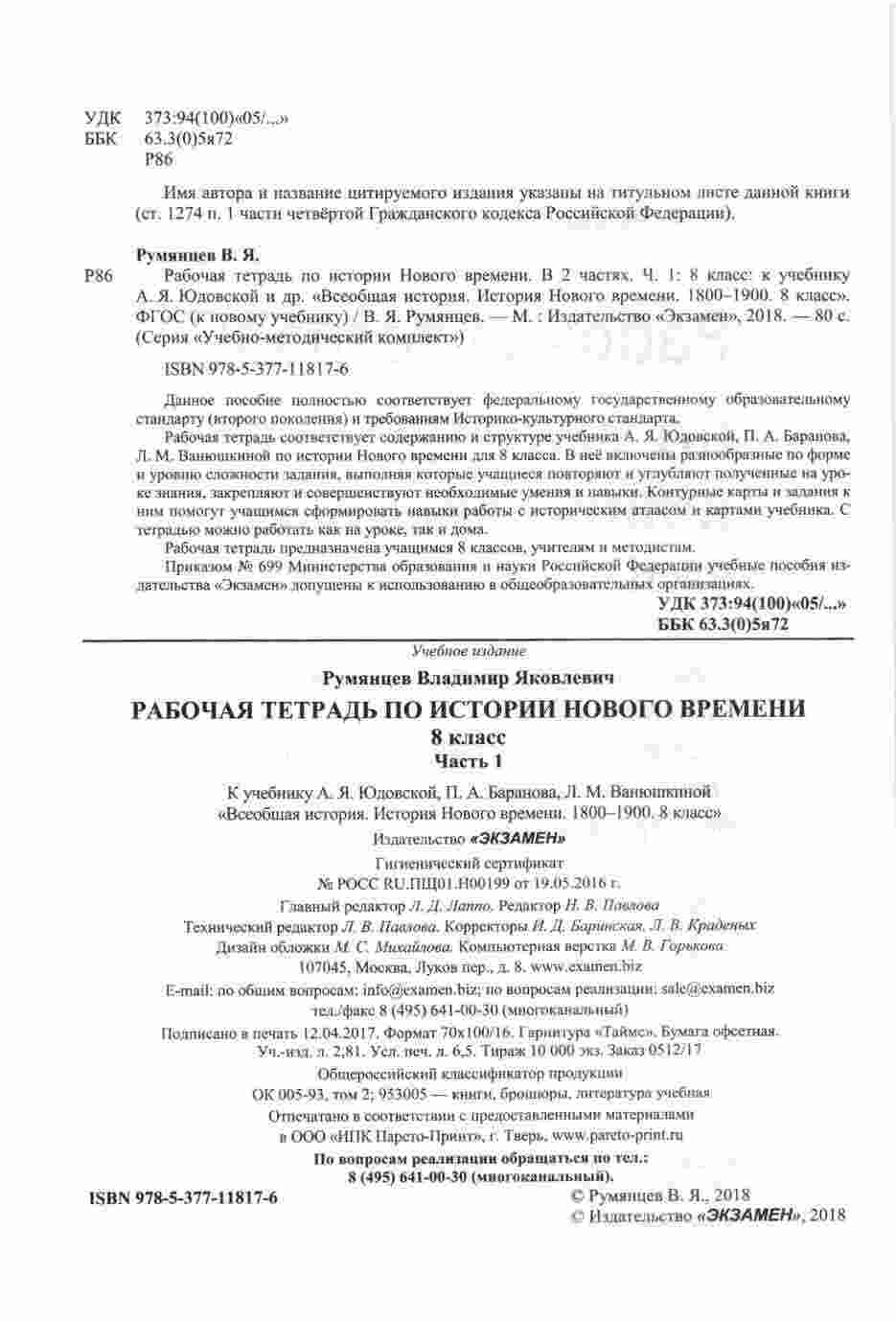 "Рабочая тетрадь по истории Нового времени 8 класс, часть 1" от авторов Румянцева, Юдовской и Баранова представляет собой учебное пособие, созданное специально для восьмиклассников, изучающих историю Нового времени. Эта тетрадь предлагает множество заданий и упражнений, которые помогут ученикам глубже понять исторические процессы этой эпохи. Основные особенности тетради: Задания, разработанные с учетом уровня подготовки восьмиклассников и требований учебной программы. Интересные исторические факты и события, представленные в доступной форме. Разнообразные упражнения, включая тесты, анализ источников, составление хронологических таблиц и др. Простой и понятный язык, который делает материал доступным для всех учеников. Эта рабочая тетрадь поможет восьмиклассникам успешно освоить материал по истории Нового времени и развить навыки анализа исторических событий и источников. Она станет надежным помощником как в классе, так и для самостоятельной подготовки к контрольным и экзаменам.