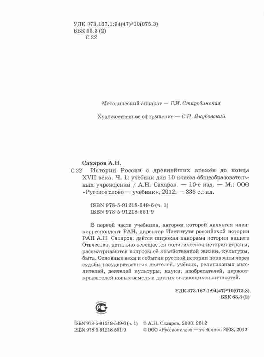 "История России с древнейших времен до конца XVI века" в исполнении Сахарова - это не просто учебник, это источник мудрости и понимания богатой истории России. Он приглашает вас на увлекательное путешествие сквозь века, начиная с самых древних времен и заканчивая XVI веком. Эта первая часть предоставляет непревзойденный обзор основных событий и трансформаций, с которыми столкнулась Россия на своем пути. Сахаров, опытный исследователь и преподаватель, смешивает факты и анализ с увлекательными рассказами, чтобы сделать историю более доступной и интересной для студентов. Каждая страница учебника наполнена живописными описаниями событий, важными историческими фигурами и анализом причин и последствий ключевых событий. Эта книга не только предоставляет информацию о важных датах и фактах, но и позволяет читателям глубже понять, какие силы и события легли в основу формирования современной России. Сахаров поднимает вопросы о культуре, религии, политике и обществе, чтобы дать полную картину развития страны. Читая этот учебник, студенты будут вдохновлены и заинтересованы историей России, и это учебное пособие будет надежным компаньоном в их образовательном путешествии.