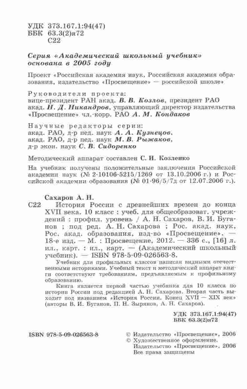 "История России с древнейших времен до конца XVII века" в исполнении Сахарова и Буганова - это первая часть учебника для десятиклассников, изучающих историю России. Эта книга предоставляет студентам глубокий обзор событий и процессов, которые сформировали Россию до конца XVII века. Сахаров и Буганов, опытные преподаватели и исследователи, представляют читателям богато иллюстрированный исторический материал. Книга начинается с рассмотрения первых славянских поселений и заканчивается рассмотрением времени Петра Великого. Учебник помогает студентам понять ключевые моменты в истории России, включая формирование государства, распространение православия и важные политические события. Книга также включает задания для обсуждения, анализа и исследования, чтобы студенты могли развивать свои исторические навыки. Читая этот учебник, десятиклассники будут готовы к более глубокому изучению истории России и более широкому анализу периода XVIII-XXI веков во второй части учебника.