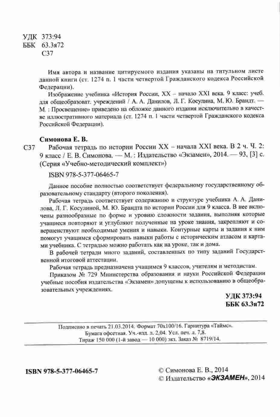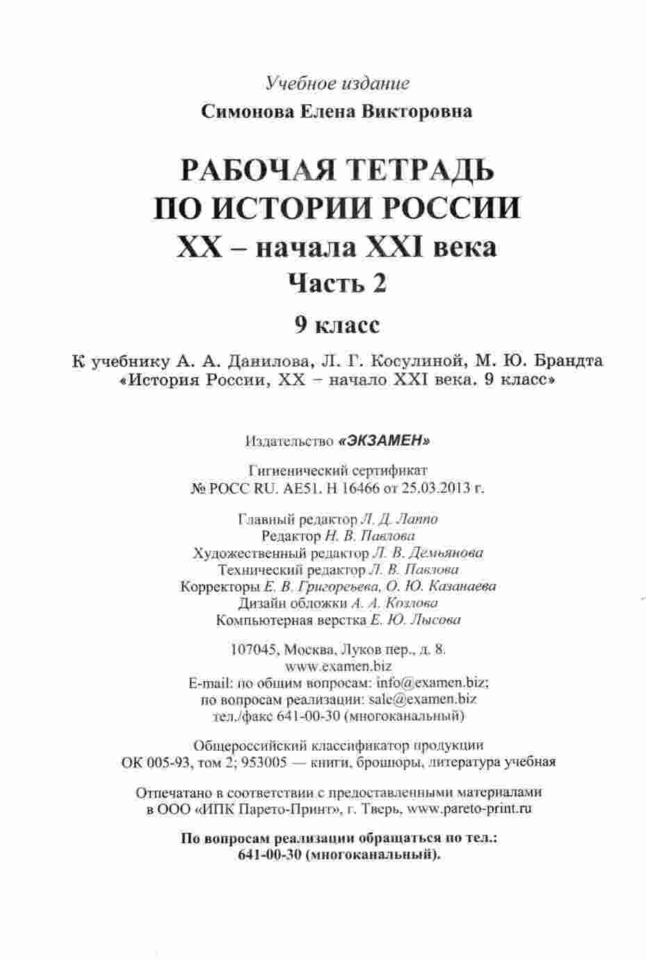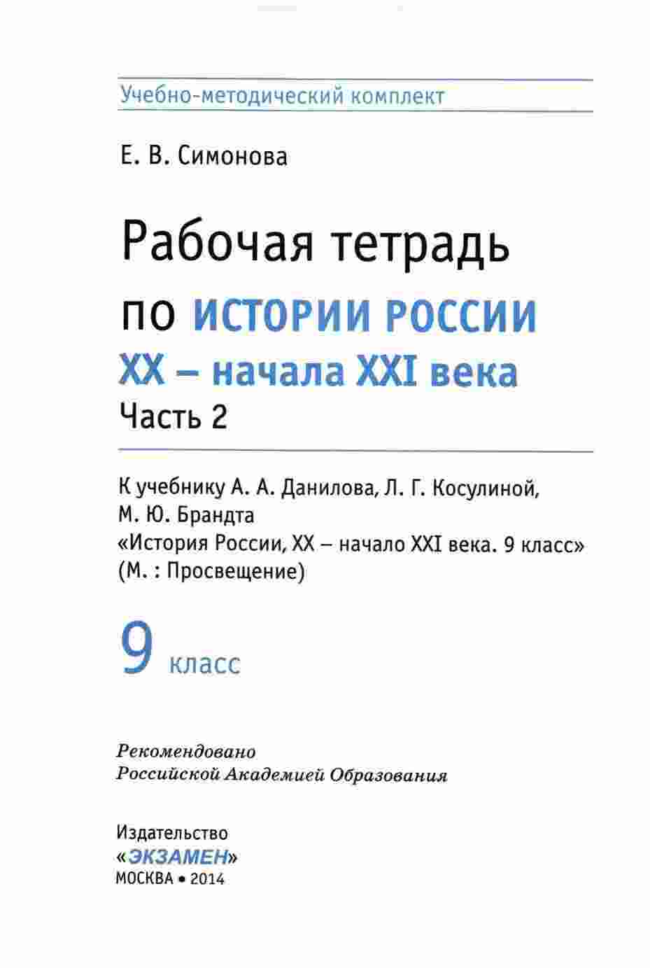 "Рабочая тетрадь по истории России 9 класс (часть 2)" продолжает ваше глубокое изучение истории России в 9 классе. Авторы Симонова, Данилов и Косулина предлагают разнообразные задания и упражнения, которые помогут вам закрепить знания и развить навыки, необходимые для успешного сдачи экзаменов и контрольных работ. В этой тетради вы найдете задания на выполнение учебных задач, решение задач и ответы на вопросы, охватывающие важные темы и периоды истории России в 9 классе. Каждое задание снабжено подробными пояснениями и примерами, что поможет вам систематически и глубоко подготовиться к экзаменам и контрольным работам. "Рабочая тетрадь по истории России 9 класс (часть 2)" будет вашим надежным соратником на пути к успешной учебе и сдаче экзаменов.