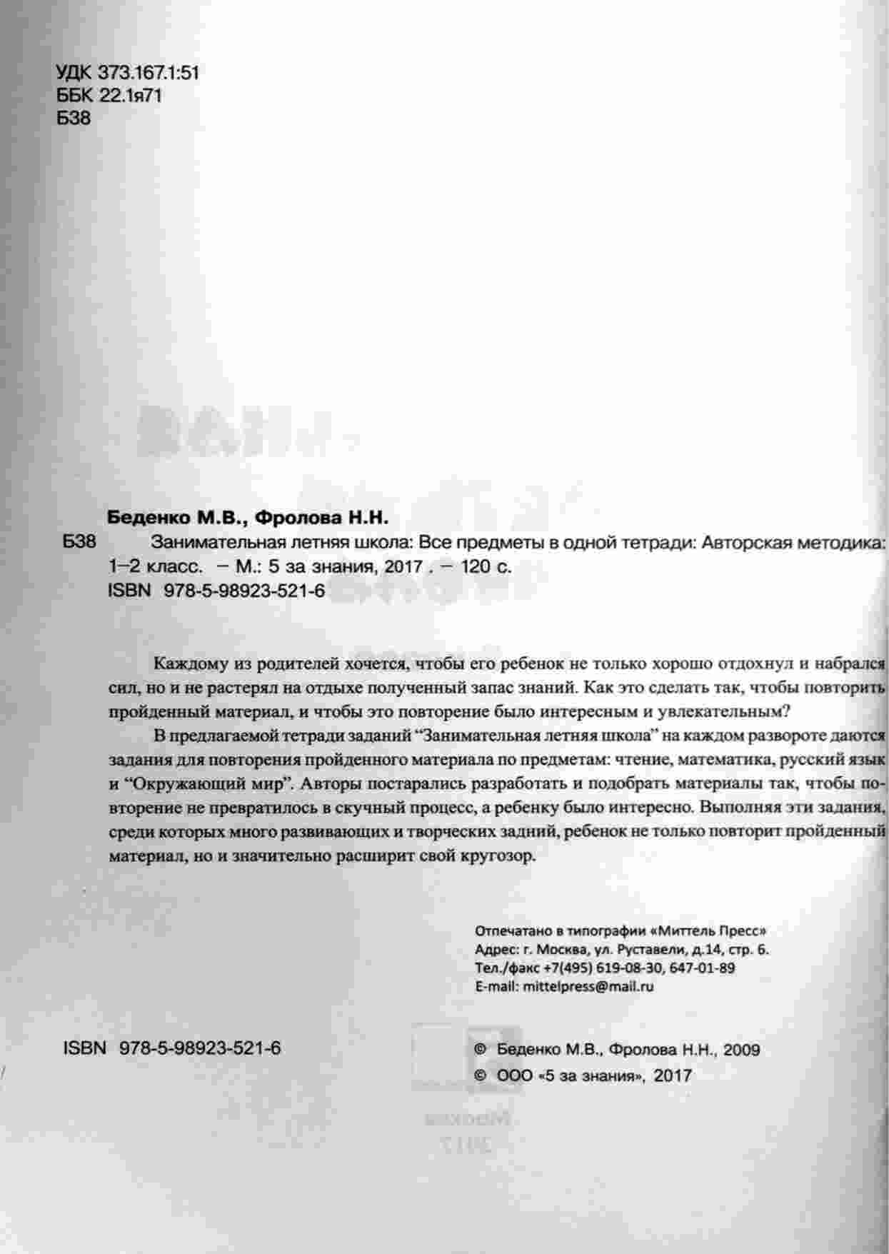 "Занимательная летняя школа. Все предметы в одной тетради 1-2 класс" от авторов Беденко и Фролова представляет собой уникальный учебный ресурс для детей, которые хотят провести лето с пользой и подготовиться к следующему учебному году. Эта тетрадь объединяет в себе материалы по различным предметам, включая математику, русский язык, литературу, и другие. Основные характеристики: Интегрированный подход: Тетрадь предоставляет упражнения и задания по различным предметам, что позволяет детям развивать навыки в разных областях знаний. Развлекательные задания: Кроме учебных заданий, в тетради также содержатся развлекательные задания и игры, чтобы сделать учебу более интересной. Яркие иллюстрации: Иллюстрации делают учебный материал более наглядным и привлекательным для детей. Подробные объяснения: Тетрадь включает в себя подробные пояснения к заданиям, что помогает детям разобраться с материалом. Эта тетрадь поможет детям провести лето с пользой, поддерживать и развивать свои знания, и быть готовыми к новому учебному году.