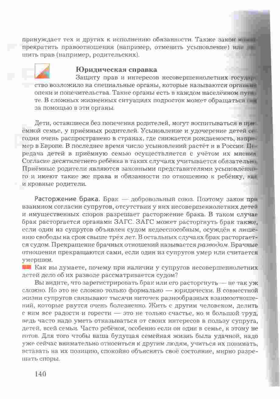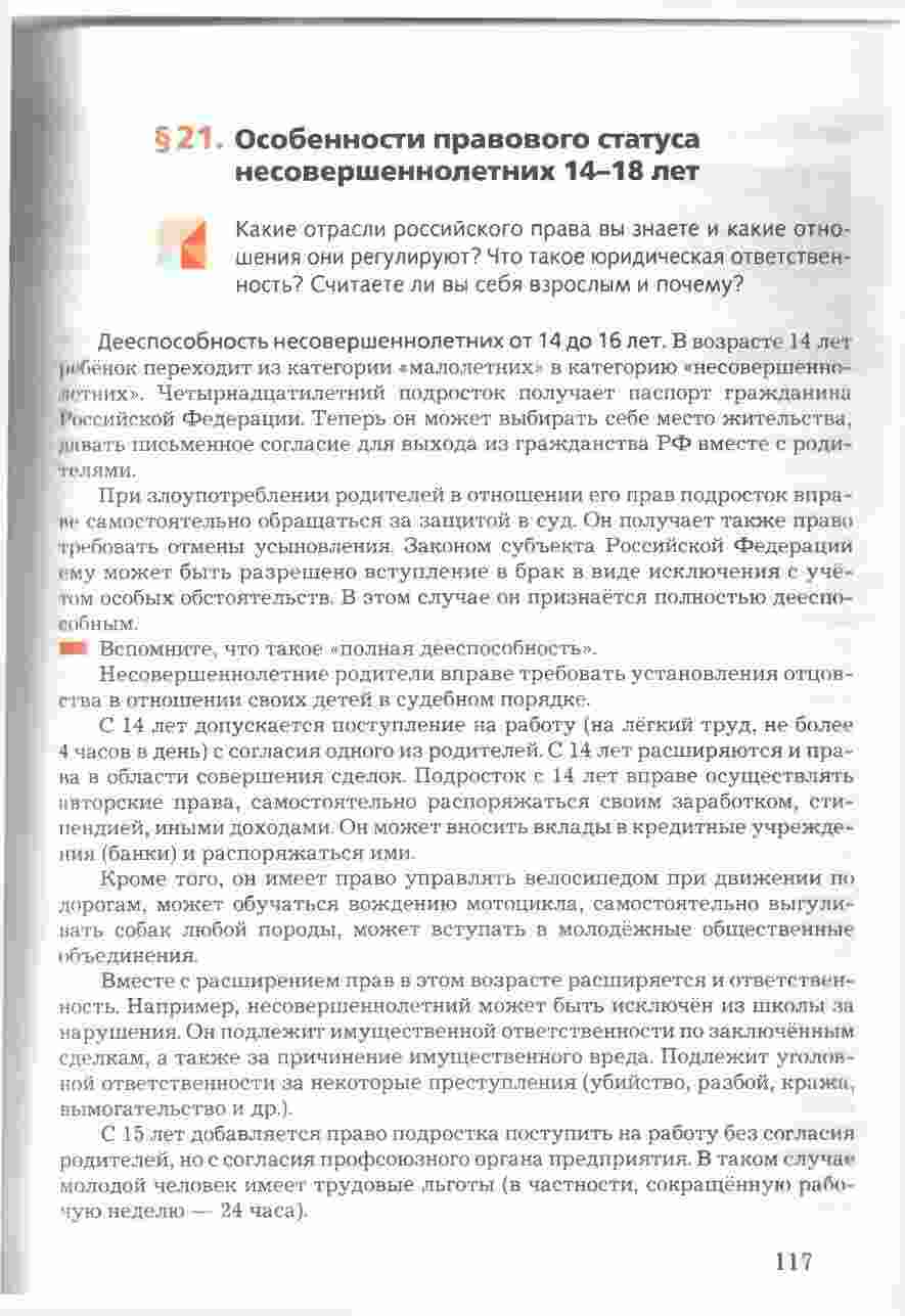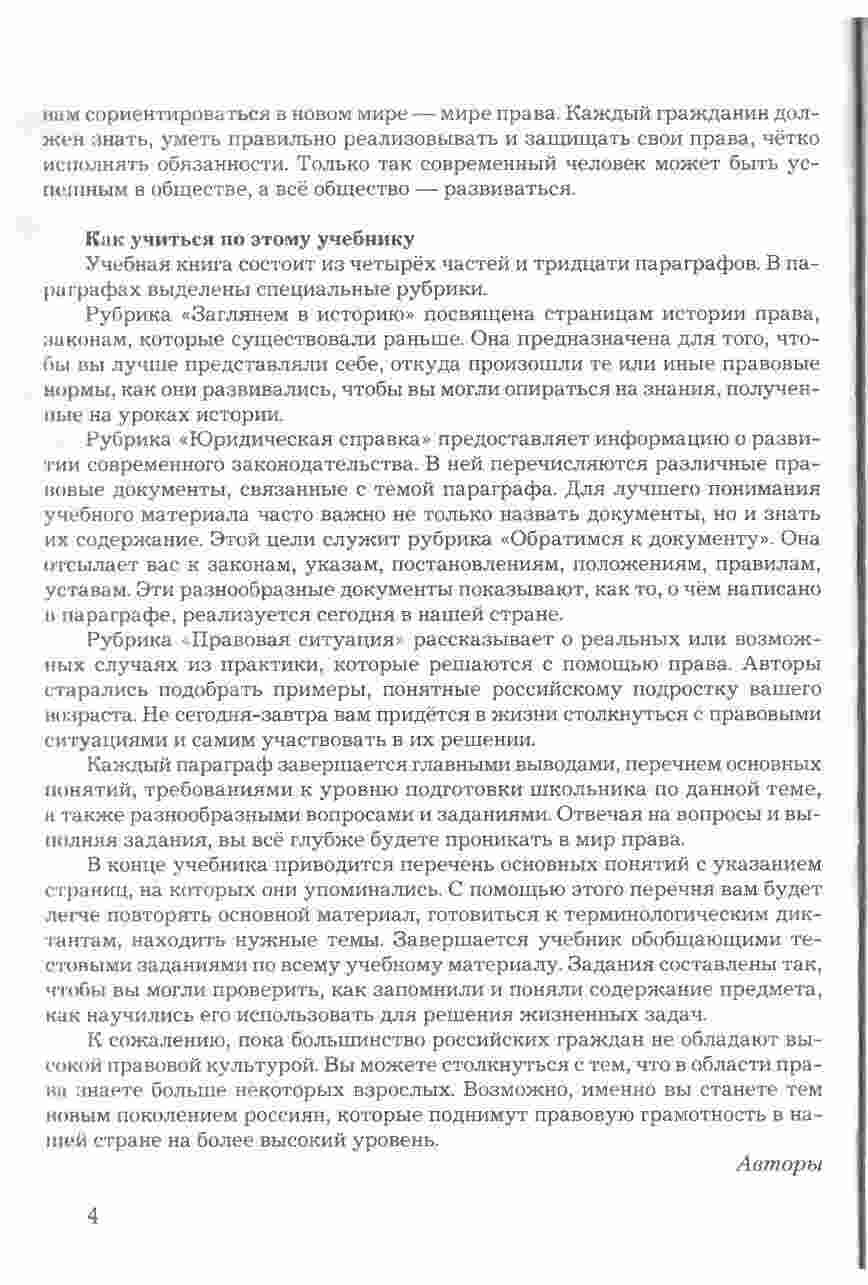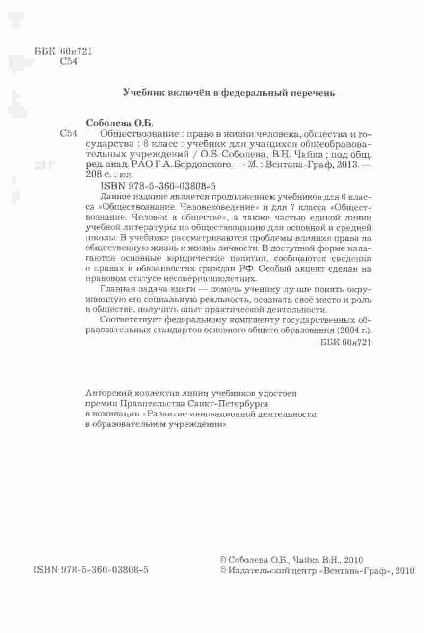 Учебник "Право в жизни человека, общества и государства" для 8 класса, авторами которого являются Соболева и Чайка, представляет собой всесторонний и интересный ресурс для изучения права и его роли в обществе. Книга предоставляет учащимся подробное введение в основные понятия и принципы правовой системы, а также рассматривает их применение в повседневной жизни. Она охватывает темы, такие как права человека, гражданские права и обязанности, уголовное право, административное право и многое другое. Учебник снабжен интересными примерами, случаями из практики, а также вопросами для обсуждения, что делает изучение права более живым и понятным. Книга также включает в себя задания и тесты для проверки знаний и развития аналитических навыков. С этим учебником, изучение права в 8 классе становится интересным и полезным опытом.