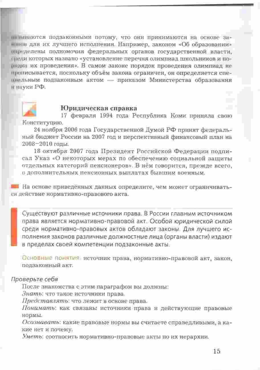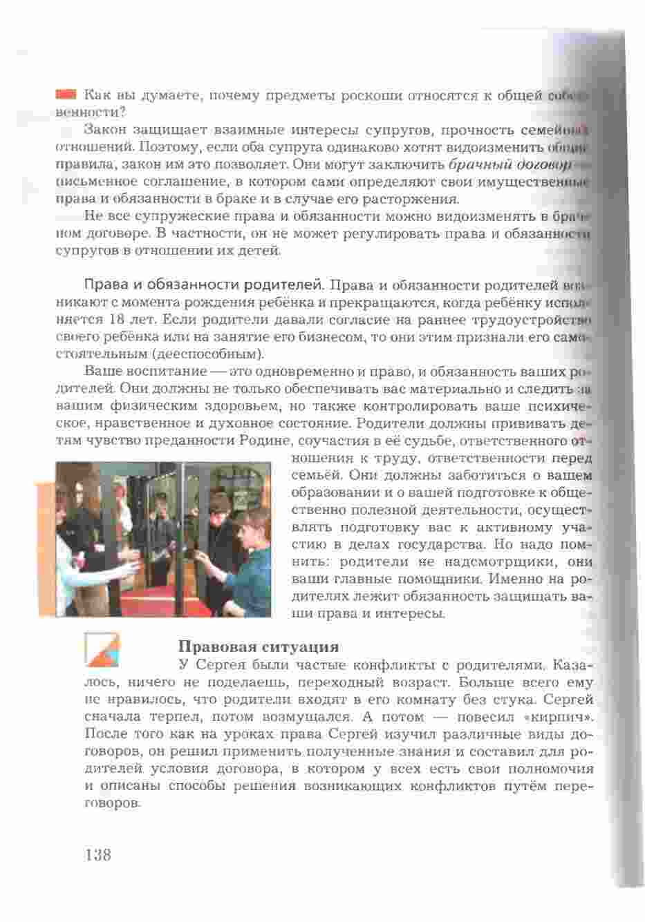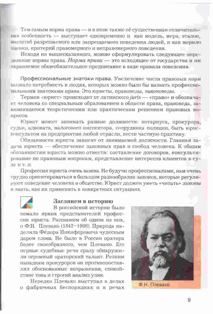 Учебник "Право в жизни человека, общества и государства" для 8 класса, авторами которого являются Соболева и Чайка, представляет собой всесторонний и интересный ресурс для изучения права и его роли в обществе. Книга предоставляет учащимся подробное введение в основные понятия и принципы правовой системы, а также рассматривает их применение в повседневной жизни. Она охватывает темы, такие как права человека, гражданские права и обязанности, уголовное право, административное право и многое другое. Учебник снабжен интересными примерами, случаями из практики, а также вопросами для обсуждения, что делает изучение права более живым и понятным. Книга также включает в себя задания и тесты для проверки знаний и развития аналитических навыков. С этим учебником, изучение права в 8 классе становится интересным и полезным опытом.