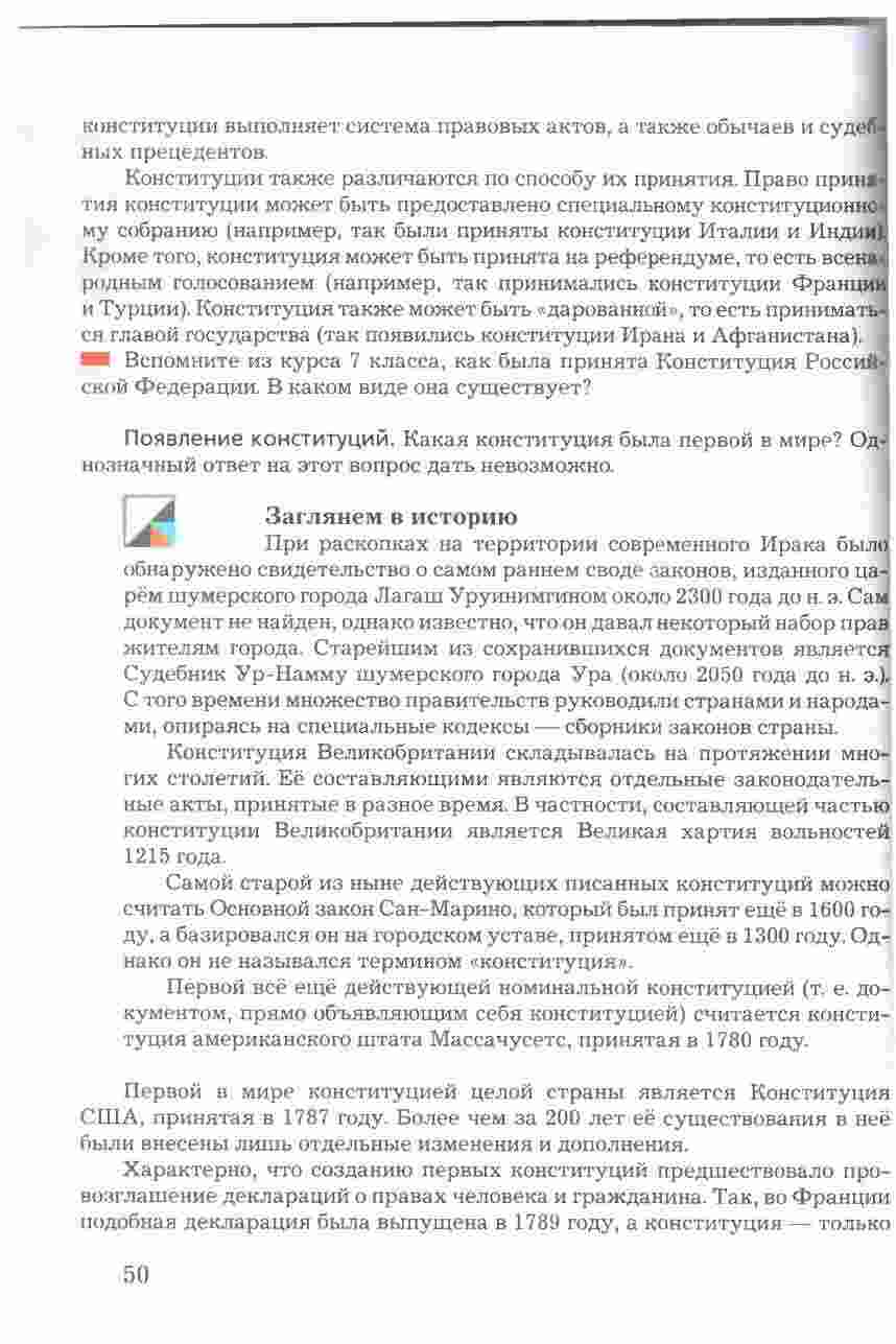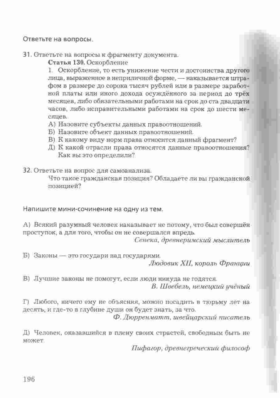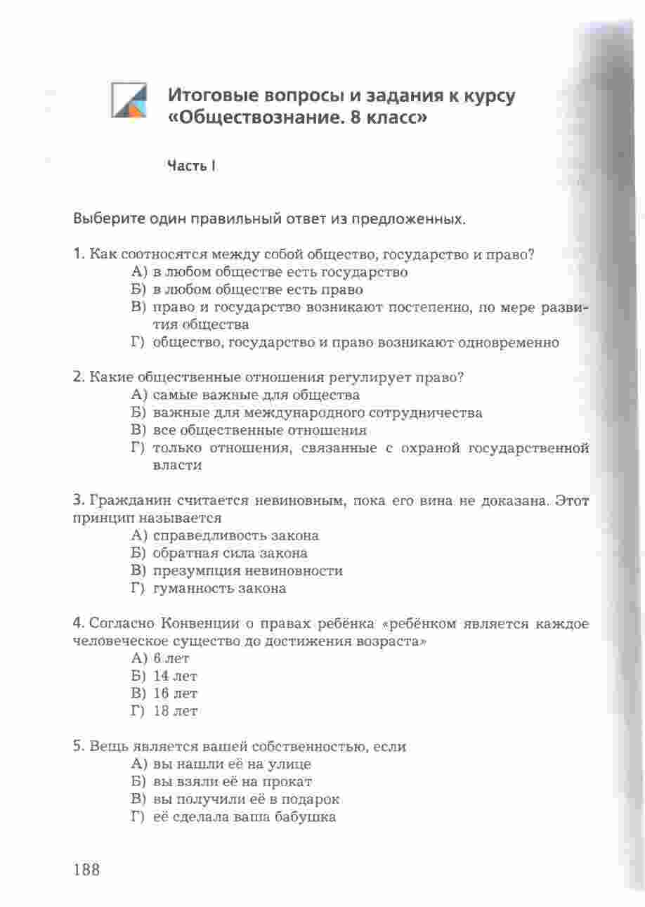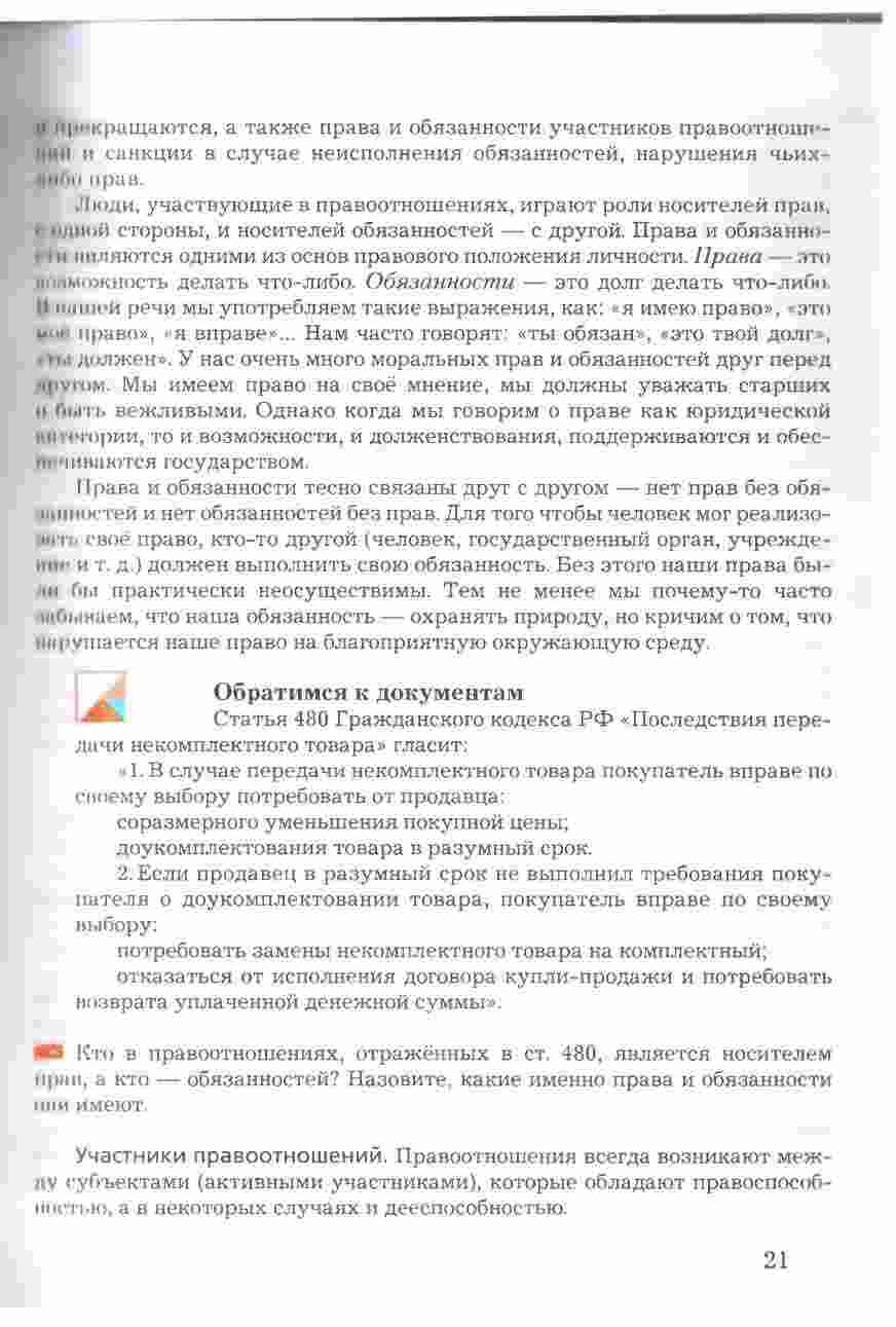 Учебник "Право в жизни человека, общества и государства" для 8 класса, авторами которого являются Соболева и Чайка, представляет собой всесторонний и интересный ресурс для изучения права и его роли в обществе. Книга предоставляет учащимся подробное введение в основные понятия и принципы правовой системы, а также рассматривает их применение в повседневной жизни. Она охватывает темы, такие как права человека, гражданские права и обязанности, уголовное право, административное право и многое другое. Учебник снабжен интересными примерами, случаями из практики, а также вопросами для обсуждения, что делает изучение права более живым и понятным. Книга также включает в себя задания и тесты для проверки знаний и развития аналитических навыков. С этим учебником, изучение права в 8 классе становится интересным и полезным опытом.